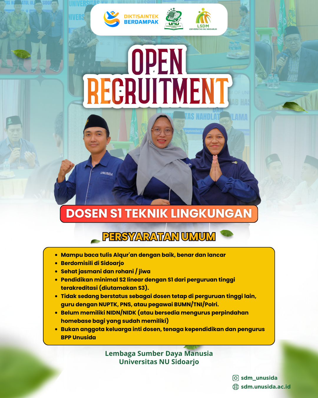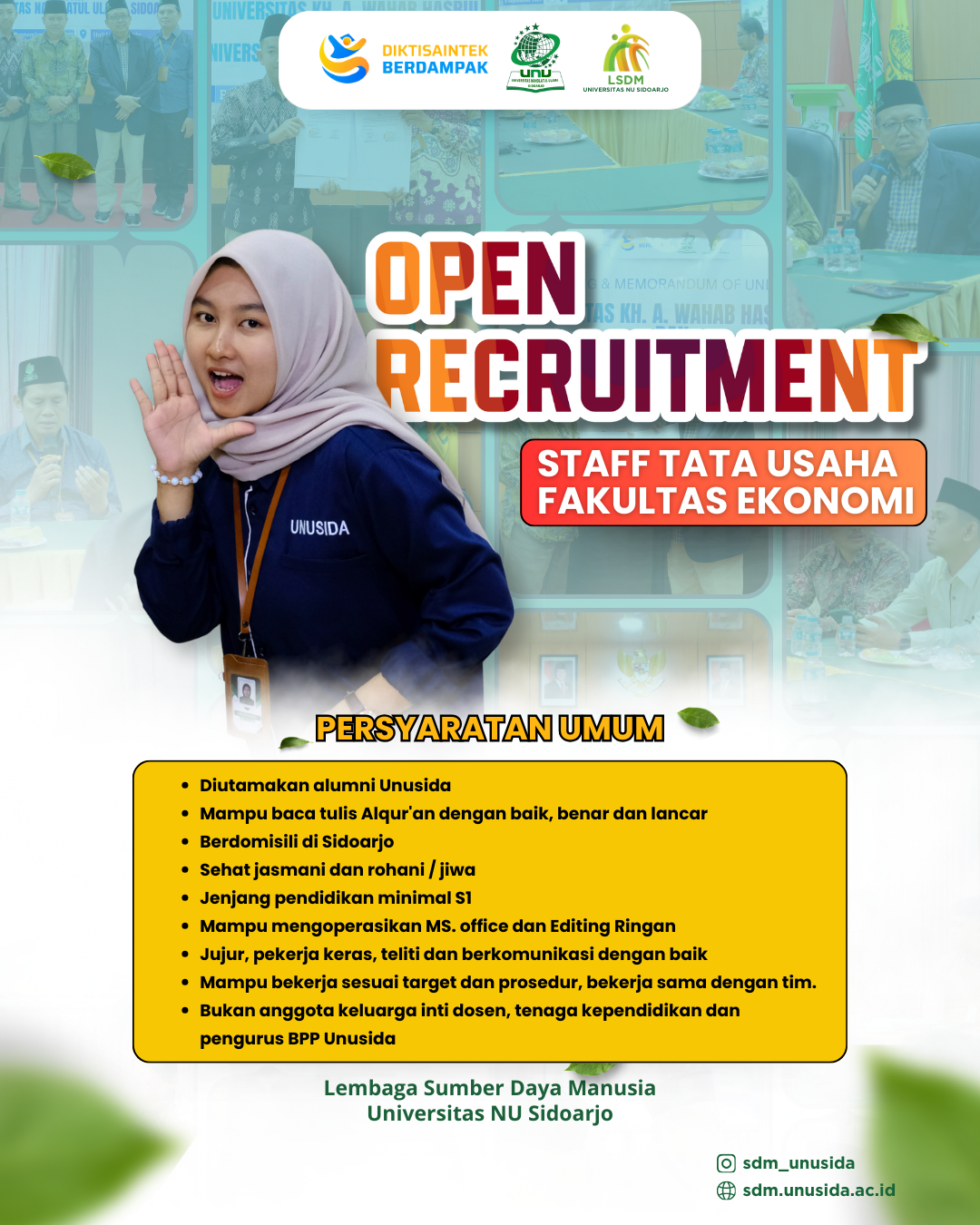 SIDOARJO — Lembaga Sumber Daya Manusia (LSDM) Universitas Nahdlatul Ulama Sidoarjo (UNUSIDA) menggelar kegiatan penyerahan Surat Keputusan (SK) Pegawai Tetap, Kamis (tanggal kegiatan menyesuaikan). Sebanyak 11 pegawai resmi menerima SK sebagai pegawai tetap, terdiri dari 1 dosen tetap dan 10 tenaga kependidikan, termasuk satu tenaga operasional.