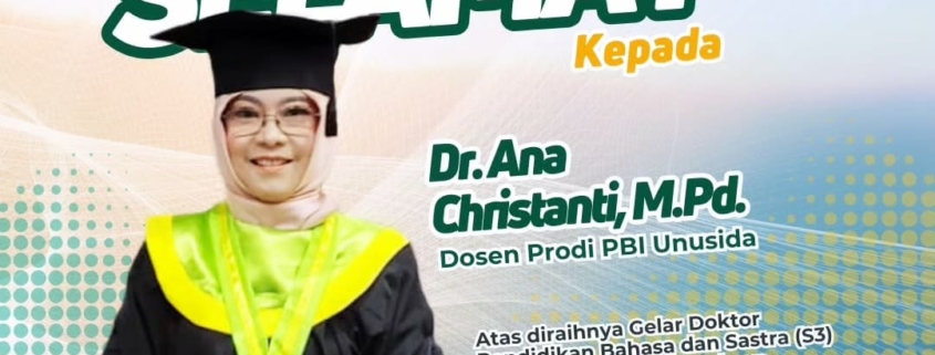 SELAMAT KEPADA DR. ANA CHRISTANTI, M.PD. ATAS DIRAIHNYA GELAR DOKTOR PENDIDIKAN BAHASA DAN SASTRA (S3)